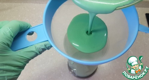 Если мелкие пузыри все-таки появились, то процеживаем через мелкое сито. Накрываем пленкой в контакт и остужаем.