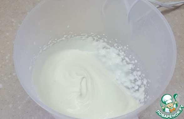 Мусс. Взбиваем сливки до мягких пик и ставим в холодильник.