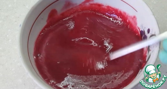 Малину ставим на небольшой огонь и доводим до мягкости ( замороженной малины уйдет примерно 350 г). протираем через сито. добавляем распущенный желатин (не кипятим) и смешиваем.