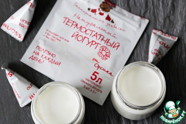 В пастеризованное молоко комнатной температуры всыпать закваску для йогурта от Oursson, хорошо перемешать до полного ее растворения.