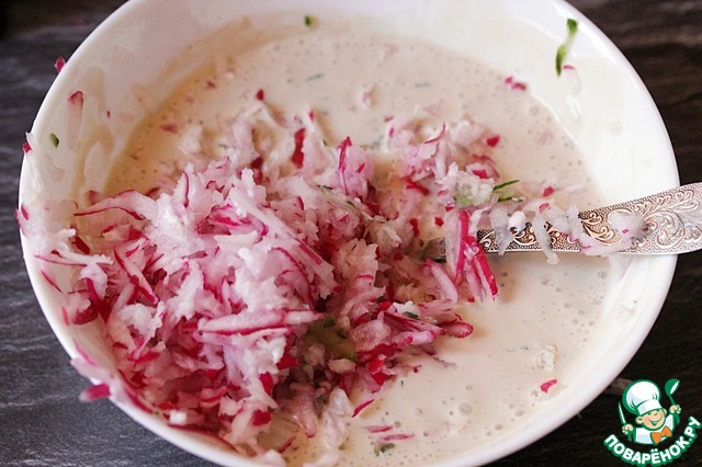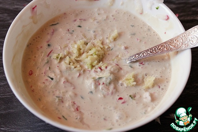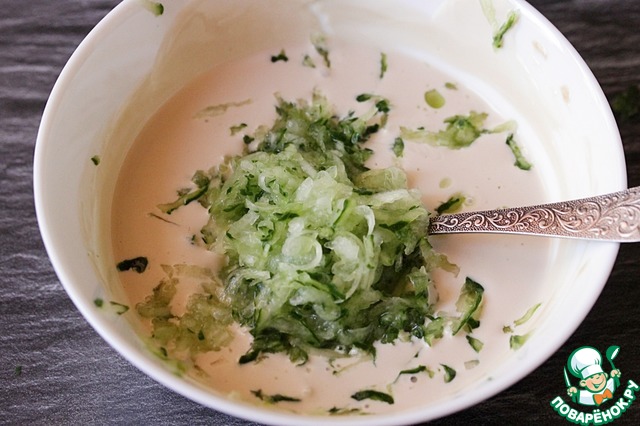 Я натираю сразу в йогурт, чтобы не пропадал сок от овощей. Если вы хотите, чтобы соус был гуще, то натирайте овощи в другую посуду, а затем отожмите сок. -