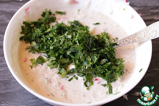 Зелень берите по своему вкусу, у меня здесь всего понемногу - укроп, петрушка, кинза.