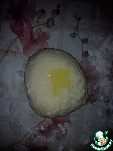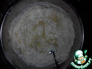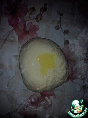 В тесте сделать не большое углубление налить туда 1 ст. л растительного масла
