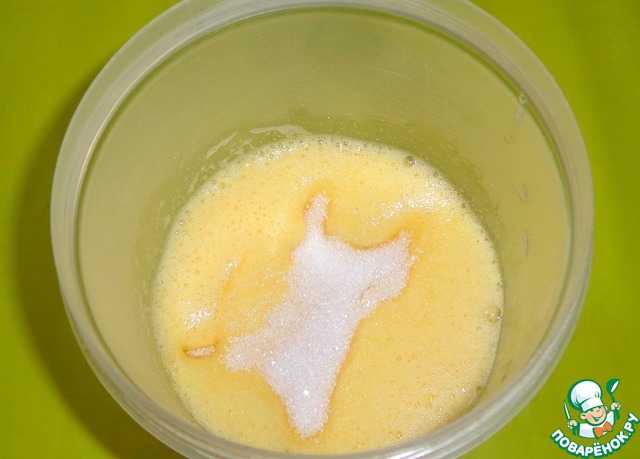 Куриные яйца взбиваем с сахаром в течение 5 минут.