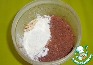 Добавляем разрыхлитель, муку и тертый шоколад. Вместо шоколада можно добавлять и какао, но тогда получатся темные кексы. А с шоколадом они получаются пестрые.