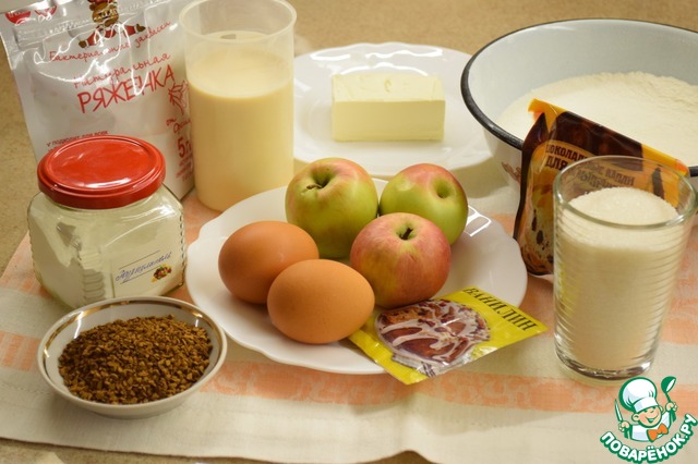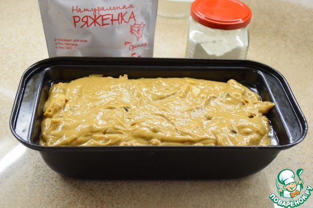 Влить ряженку, добавить разрыхлитель, ванилин, перемешать.