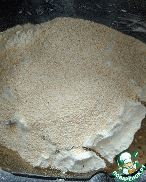 На дно ведра хлебопечки насыпать сухие дрожжи, просеять муку пшеничную и ржаную, добавить соль.