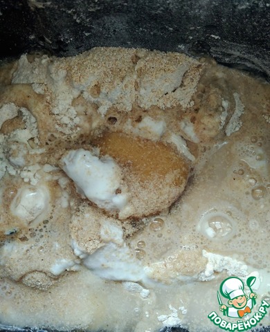 Добавить воду. Поставить в хлебопечку, выставить режим для приготовления ржаного хлеба.
