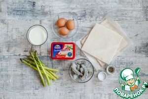 Ингредиенты для «Сырный тарт с креветками и спаржей»: