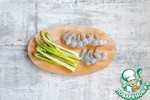 Креветки очистите от панциря, разрежьте вдоль пополам, удалите темную кишечную вену. У спаржи обломите жесткие концы, стебли очистите ножом для чистки овощей. Аккуратно разрежьте стебли вдоль пополам.