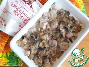 Я использовала листы лазаньи, которые не нужно отваривать. Можно использовать любые макаронные изделия, но их нужно предварительно отварить до готовности. Вкладываем на дно листы лазаньи, щедро смазываем йогуртовым соусом.