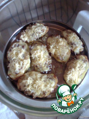 Прежде чем положить начинку, солим картошку. И запекаем еще 10-15 мин, до золотистой корочки. -