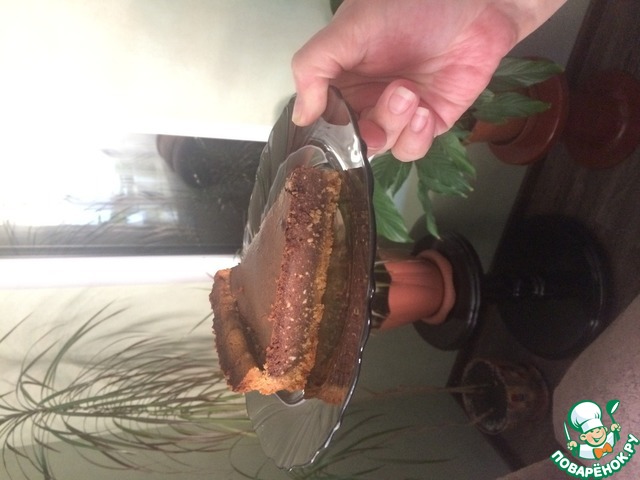 Положить полученную массу из печенья и равномерно распределить по дну и стенкам формы. Убрать в холодильник. -