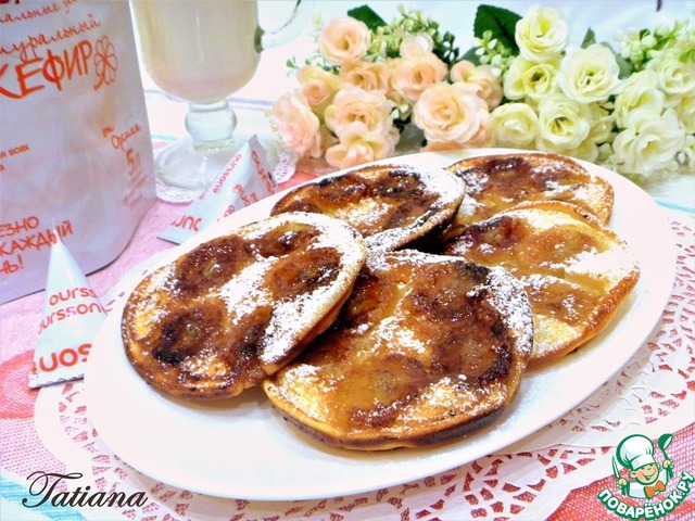 Готовые оладьи можно присыпать сахарной пудрой.