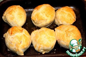 Получатся вот такие шарики. Из оставшихся двух треугольников я приготовила слойки с сыром.