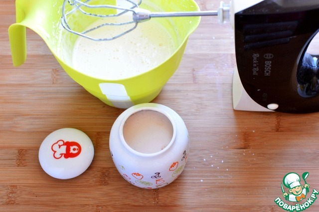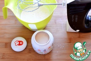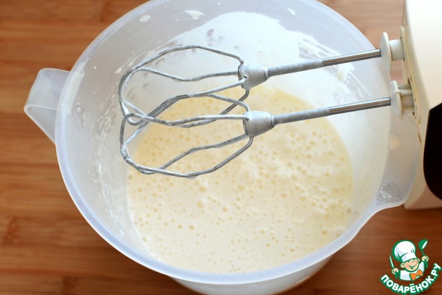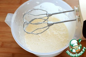 Для теста взбейте яйца с сахаром до пышной пены. Тонкой струйкой вливайте масло, продолжая взбивать.