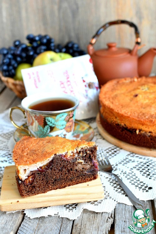 Пышный шоколадный пирог со сладкой осенней сливой под нежной вуалью йогуртовой пенки из шоколадного йогурта! Это просто праздник какой-то! Попробуйте!