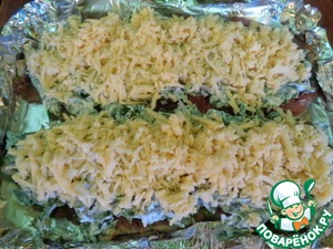 Сыр нашинковать и положить на шпинат.