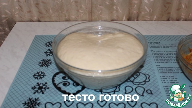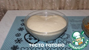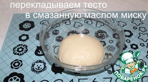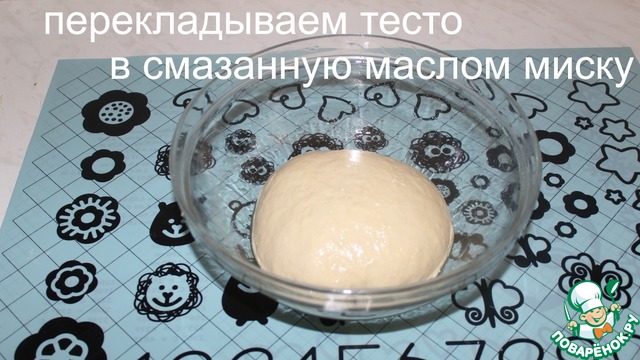 Перекладывем тесто в смазанную маслом миску. Прикрываем тесто пищевой пленкой и оставляем подходить в теплом месте 1.5 ч.
