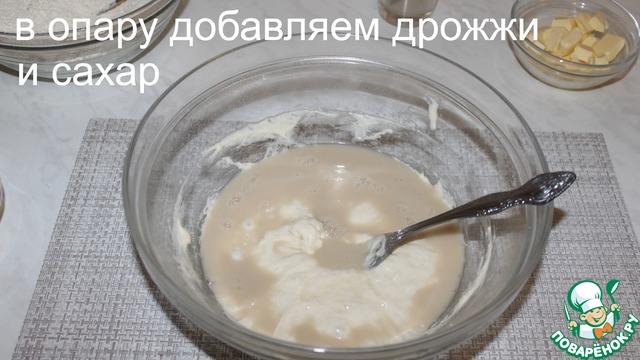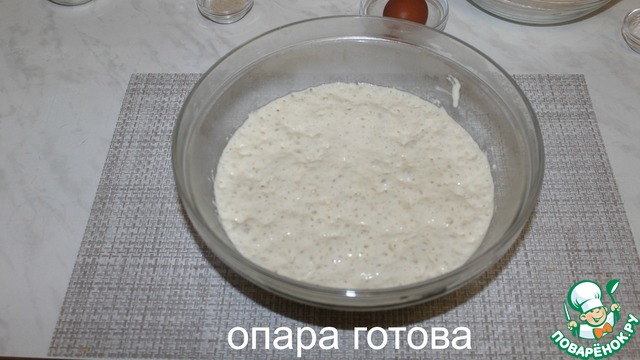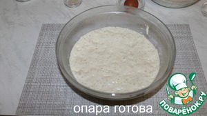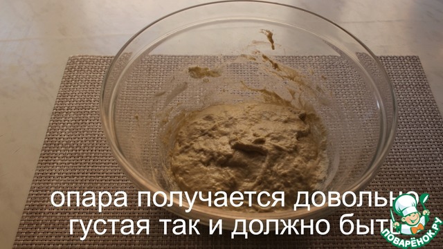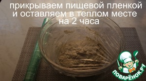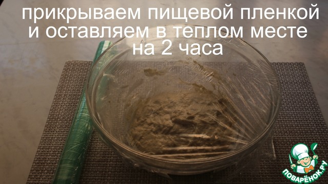Опару прикрываем пищевой пленкой и оставляем в теплом месте на 2 часа.