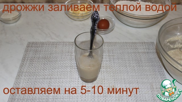 Дрожжи заливаем теплой водой и оставляем на 5-10 минут.