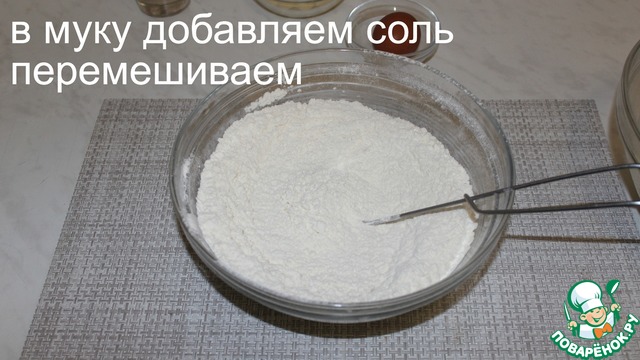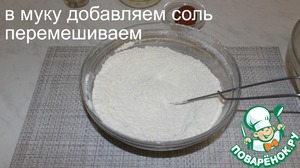 В просеянную муку добавляем соль хорошо перемешиваем.