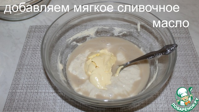 Добавляем мягкое сливочное масло и взбитое яйцо. Хорошо перемешиваем.