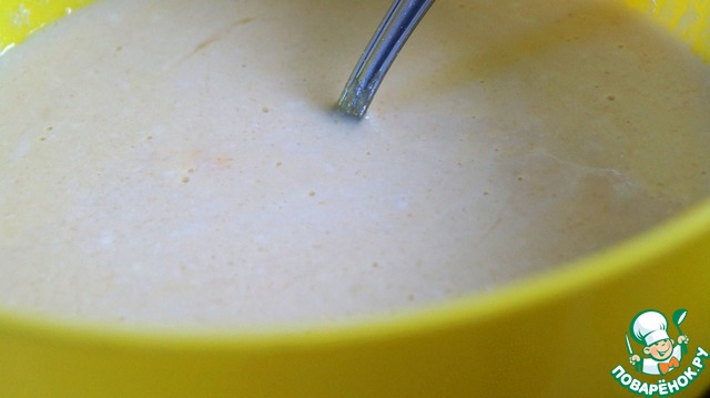 Делаем заливку: йогурт смешиваем с яйцами, 3 ст. л. манки, сахаром. При желании можно добавить ванилин.