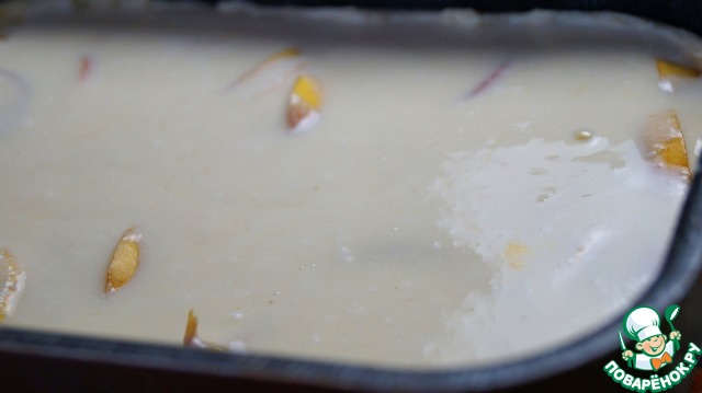 Заливаем нектарины йогуртовой смесью: можно залить их полностью, а можно, чтобы они немного выглядывали.