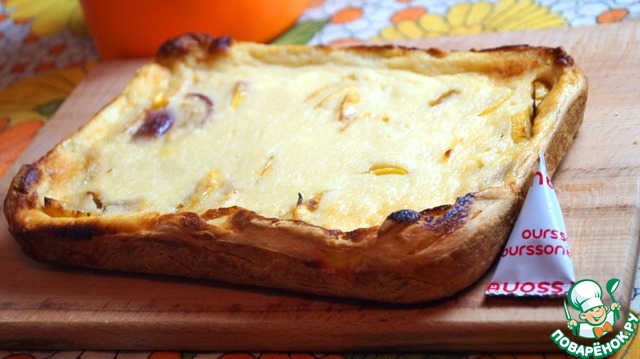 Пирог получается очень вкусный: хрустящее слоеное тесто, сочные ароматные нектарины в легком манно-йогуртовом суфле.