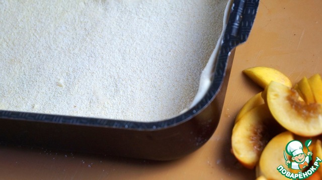 - Крупа манная (2 ст.л. на посыпку + 3 с.л. в заливку) — 5 ст. л.