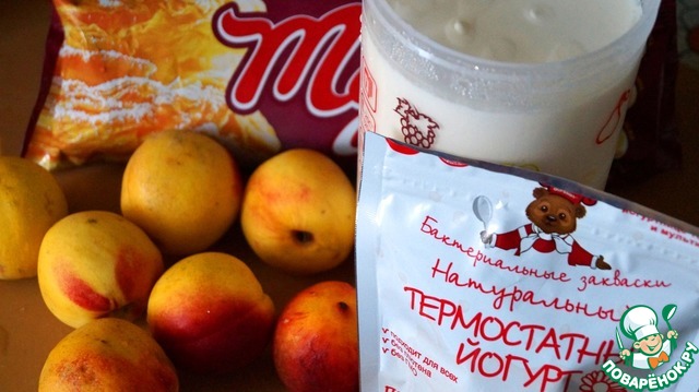 Ингредиентов не так много. Спелые нектарины или персики. Как вариант можно абрикосы или консервированные ананасы (слить хорошо). Йогурт лучше густой, домашний. Его подготовим заранее.
