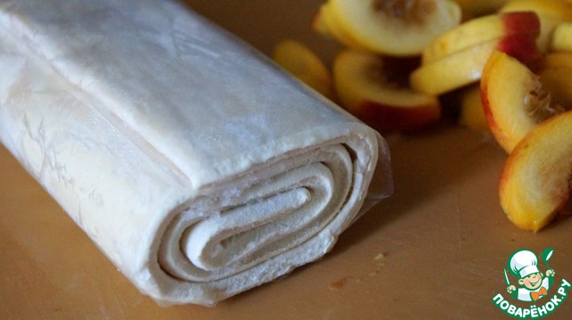 Готовое слоеное тесто вынимаем из морозильника, чтобы оно разморозилось и с ним можно было работать. А пока занимаемся подготовкой нектаринов.