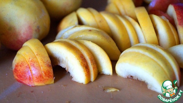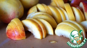 Из нектаринов удаляем косточку и нарезаем их дольками.