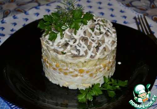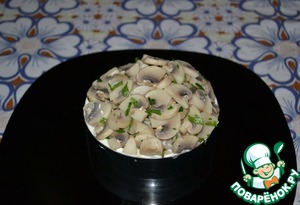 Последним слоем выложить горкой грибы.