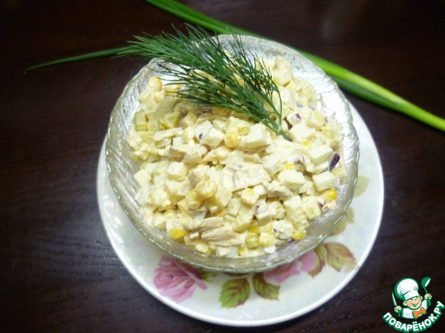 - Кукуруза (консервированная) — 1/2 бан.