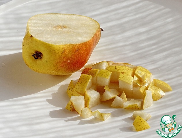 Груши при желании очистить и нарезать мелким кубиком.