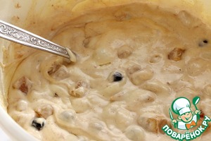 В тесто добавляем черноплодную рябину, ароматные кусочки груши и аккуратно перемешиваем.