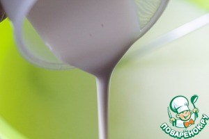 В простерилизованную прозрачную емкость для приготовления влить пастеризованное молоко комнатной температуры.