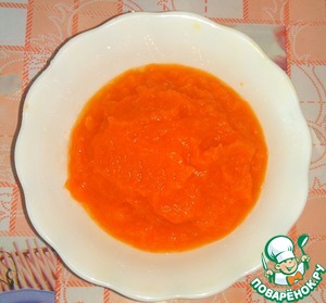 В миске смешать тыквенное пюре, тёплое молоко, растопленное масло, сахар, ванилин, дрожжи и соль. Перемешать.