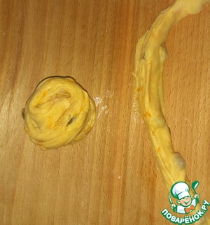 Срезами наверх заворачиваем каждую разрезанную часть в улитку.