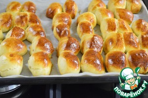 Подошедшие булочки смазываем взбитым яйцом. Выпекаем в предварительно разогретой до 180°С духовке 10 минут. Не пересушите булочки!!!