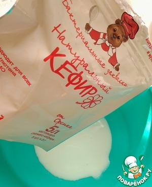 В емкость вылить кефир.