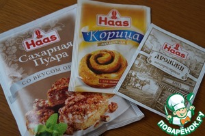 В приготовлении этого замечательного рулета, нам поможет корица, сахарная пудра и дрожжи от ТМ Haas