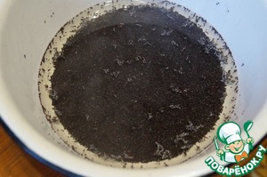 Приготовим маковую начинку. Мак запарим крутым кипятком и оставим минут на 15.