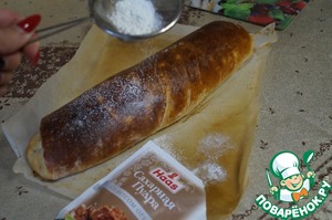 Готовому рулету даем остыть и перед подачей посыпаем сахарной пудрой.