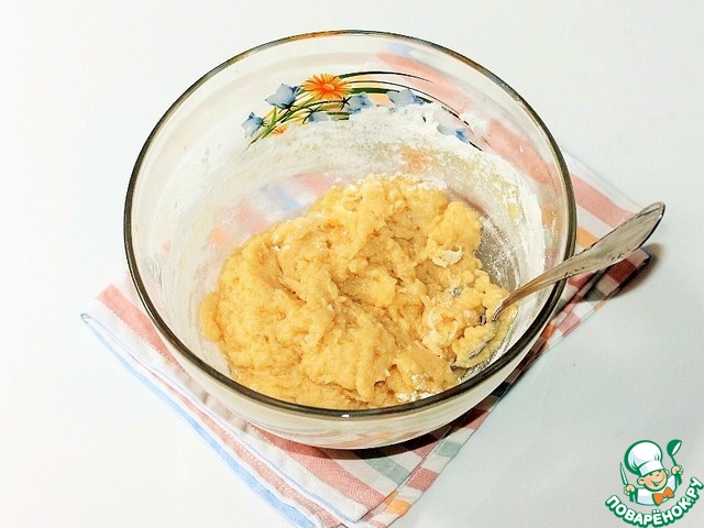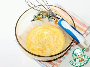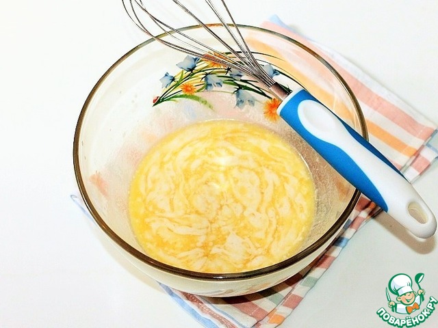 3. Затем добавляем в остывшую смесь опару и 2 желтка, взбиваем венчиком.