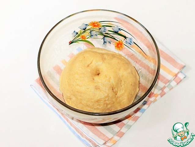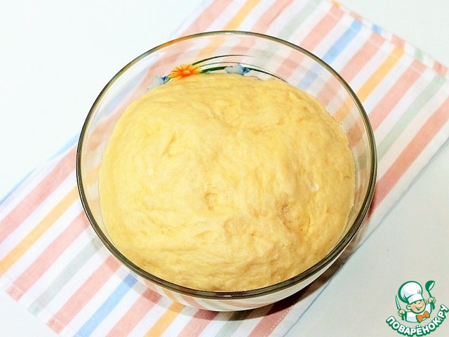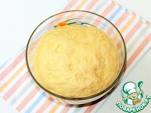 5. Скатываем тесто в шар. Накрываем миску с тестом пленкой и отправляем в теплое место для подъема в 2,5 раза.
