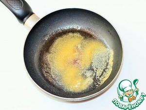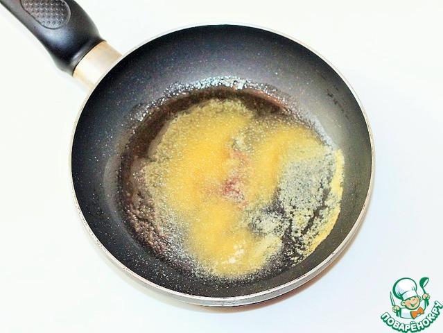 6. Приготовим начинку. Разогреваем сливочное масло и расплавляем сахар, 2-3 минуты.