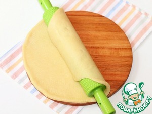 10. Две части теста раскатываем в круг и переносим при помощи скалки в формочку.